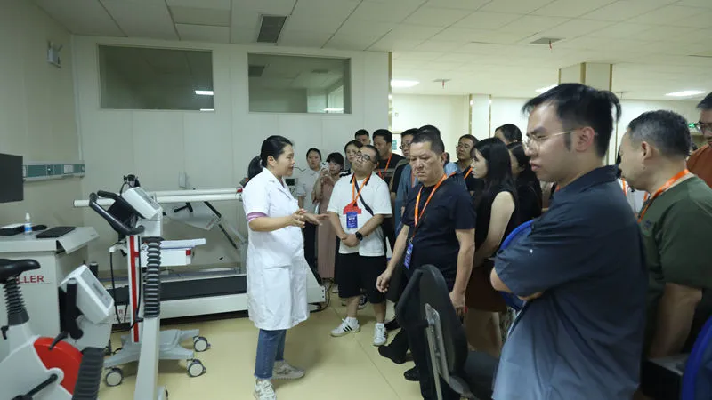 25日上午,在论坛会务组的带领下,与会的医院领导及学科带头人走进湖南省人民医院参观交流。一行人深入医院康复医学科,实地观摩智能化康复设备的临床应用场景,近距离感受医院在心肺、呼吸康复等领域的创新诊疗模式。现场气氛热烈,思想火花频现,不仅为后续开展技术协作、资源共享搭建起互通桥梁,更为各单位康复医学科的建设与发展提供了可借鉴的创新路径和实践范本。